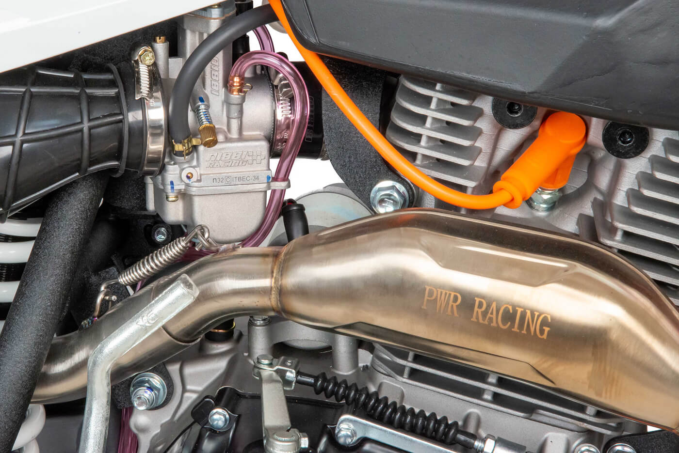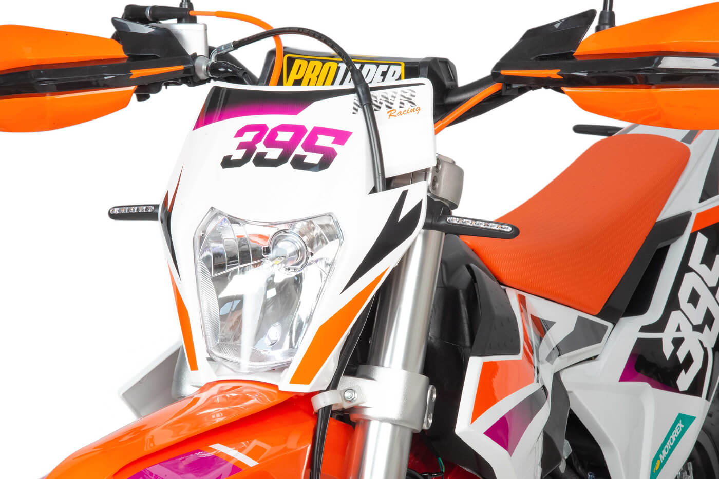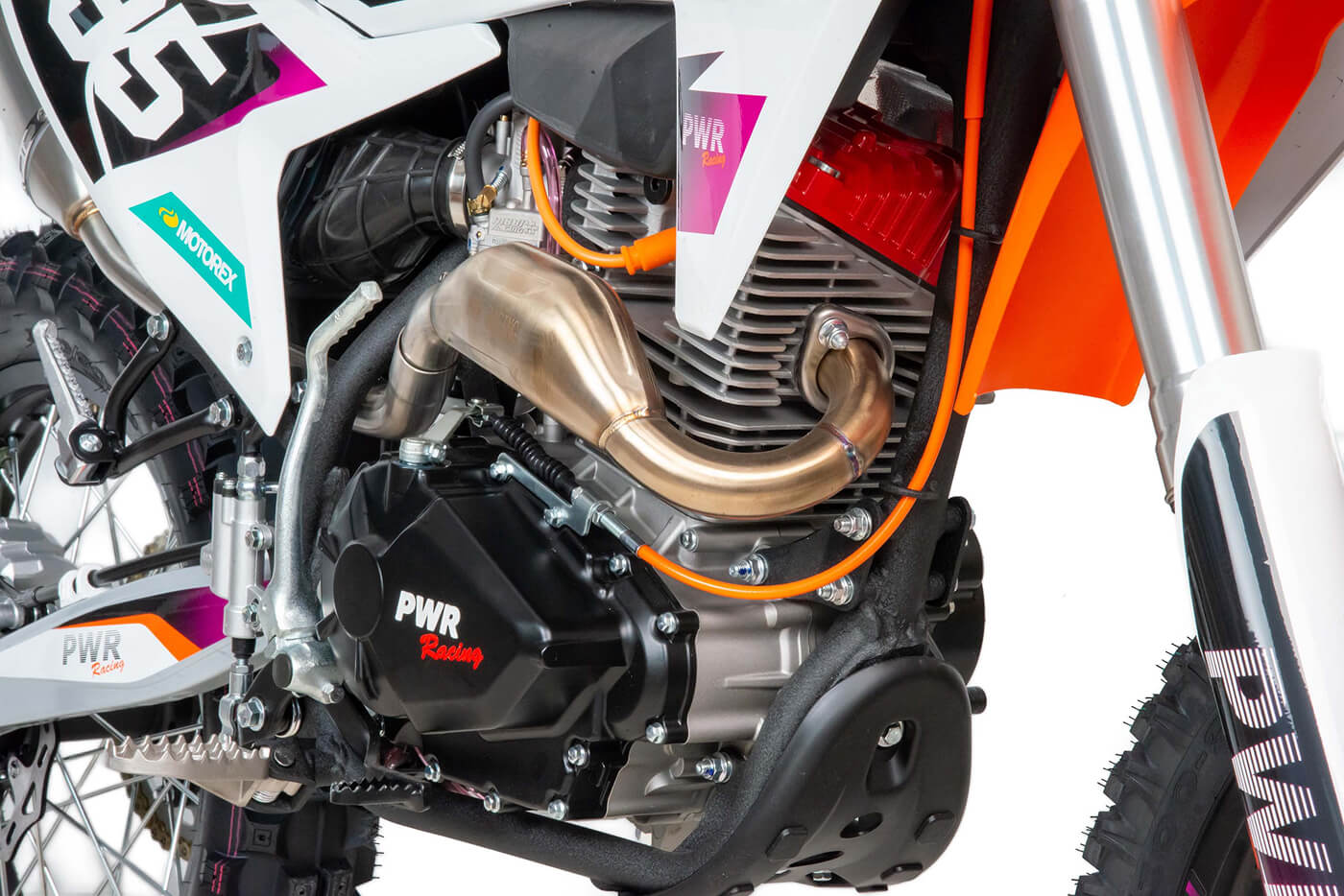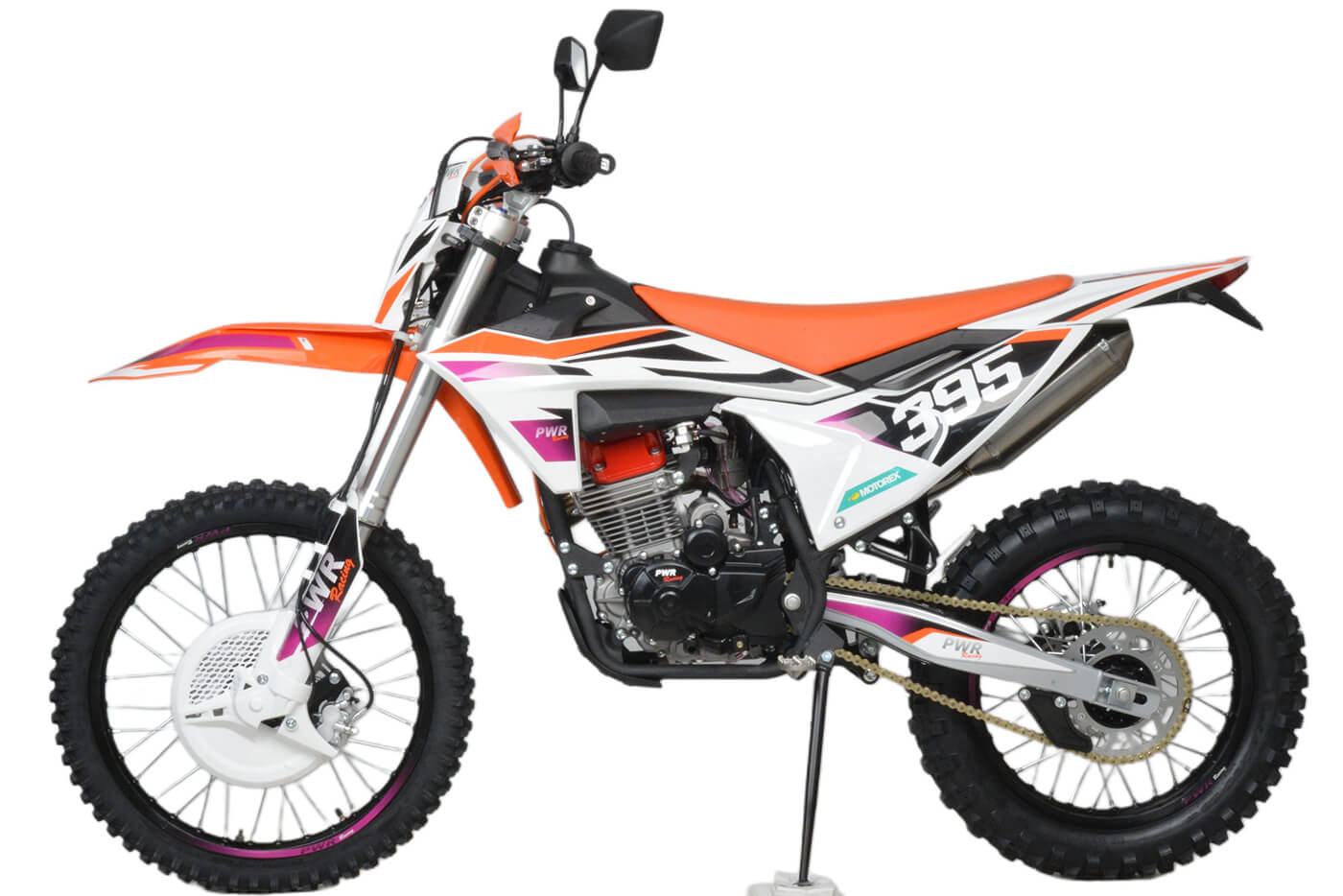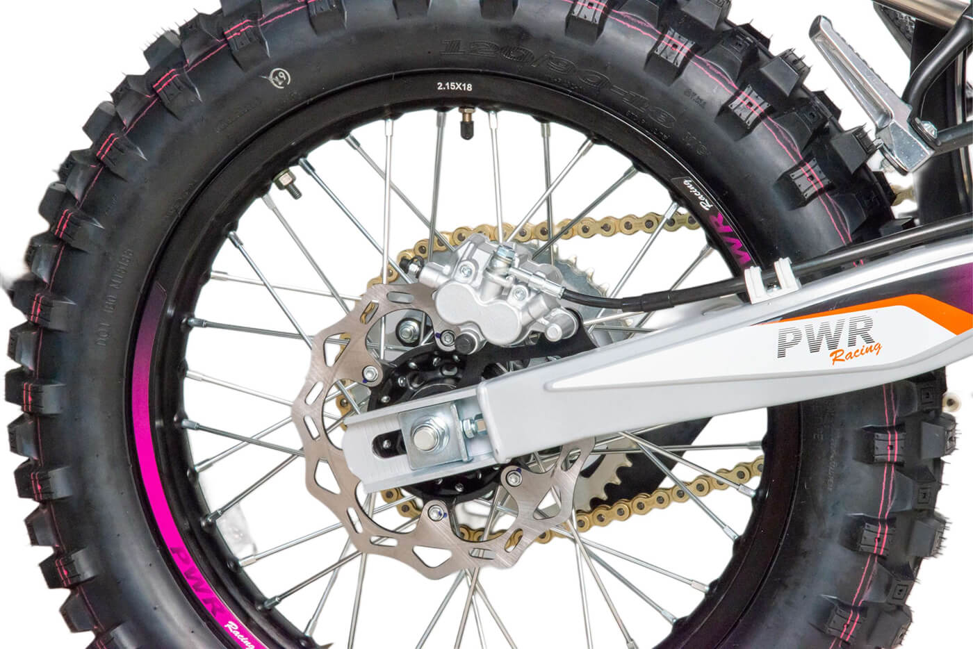 Мотоцикл весит 120 кг, выдерживает нагрузку до 150 кг. Прочный облицовочный пластик не ломается при сгибании, защищает от грязи. Покрышки на алюминиевых ободах оснащены усиленными спицами и антибуксаторами, размер заднего колеса — 18 дюймов, переднего — 21 дюйм, крепятся на полые оси.